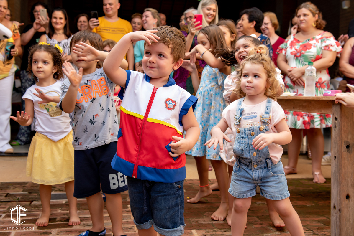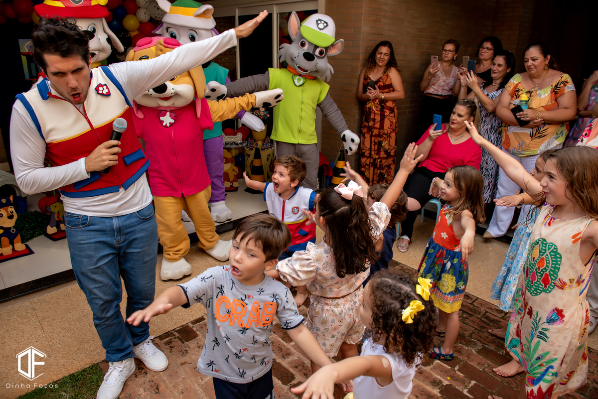 E ele, um meninão hiper simpática, sorridente e carinhoso. Veio vestido de Ryder o líder da Patrulha e logo em seguida os filhotes apareceram e a bagunça foi garantida.